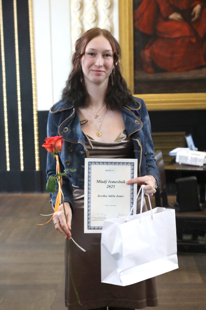 Dne 15. října 2025 byli v Brožíkově síni na Staroměstské radnici slavnostně oceněni naši žáci 🏅Jessica Adéla Jones (zlatnictví) a 🏅Matouš Mecka (kovářství) , kteří získali titul Mladý řemeslník roku. Matouš Mecka navíc obdržel čestné ocenění od Hospodářské komory ČR 🏆, což podtrhuje výjimečnou kvalitu jeho práce i talent. Gratulujeme oběma oceněným a děkujeme za […]